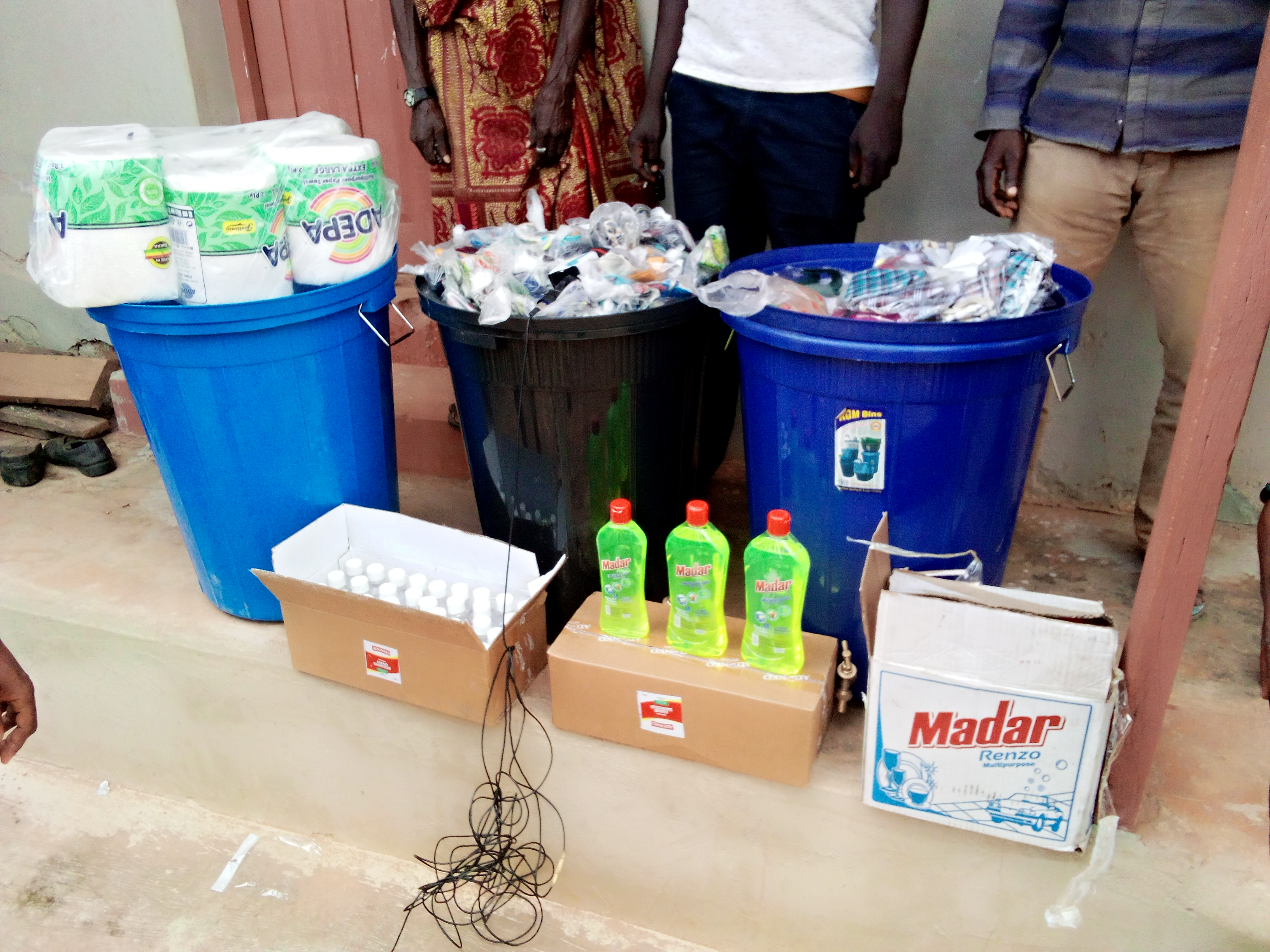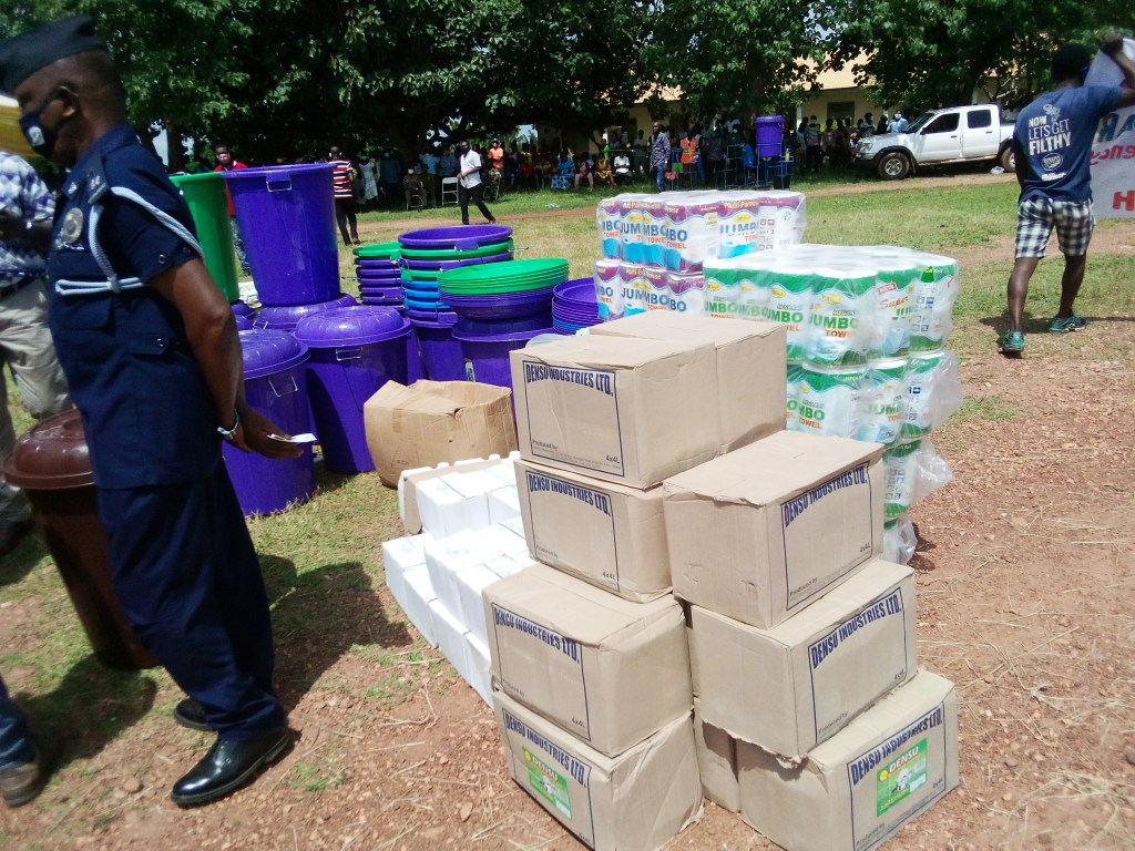 The personal protective Equipments are 20 Veronica buckets, 20 Boxes of Alcoholic-Based Hand Sanitizers,3000 Nose Masks, 20 packages of paper Towel Tissues,waste buckets, 20 gallons of liquid soaps, mini buckets and Hand gloves.the items running into Gh 10,000 (Ten Thousand Ghana cedis)