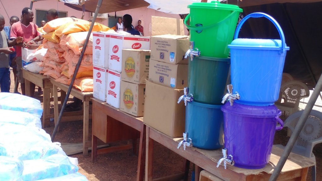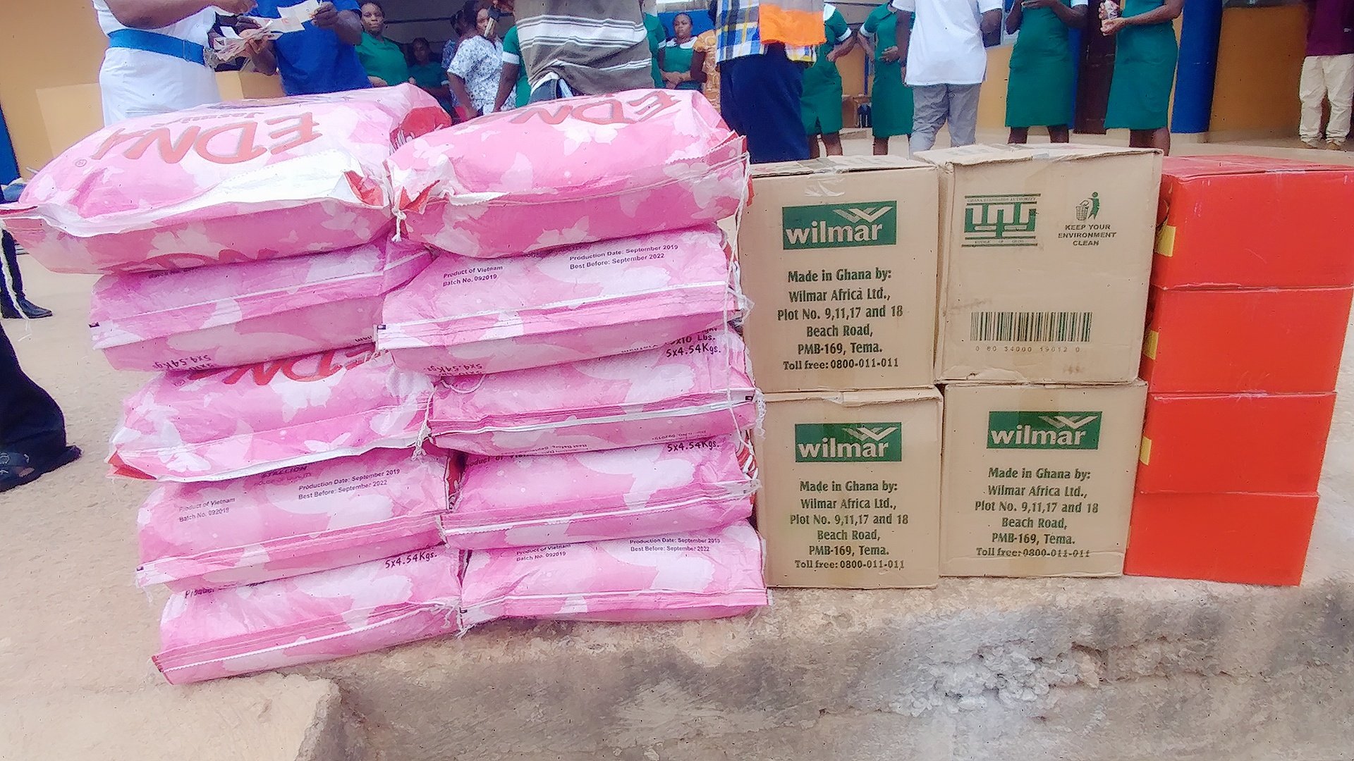 The items running into hundreds of thousands of Ghana Cedis included Bags of rice,Boxes of cooking oil,Bags of Sachet water and Boxes of Soaps meant to help the beneficiaries cope with life due to the lockdown.