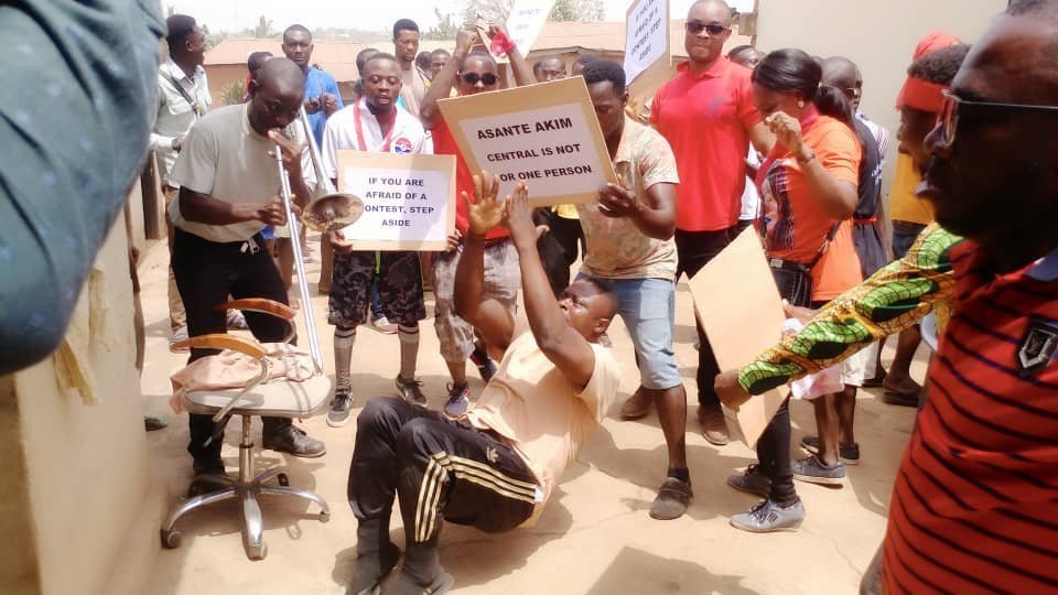 Some aggrieved npp supporters of Asante Akim Central constituency in the Ashanti region on this morning chased their constituency chairman who have been admitting in konongo government hospital to demand nomination forms for their prospective parliamentary aspirants. According to the youth, the constituency chairman called Mr George Kyei Baffour and his constituency executives have connived to protect their member of Parliament,