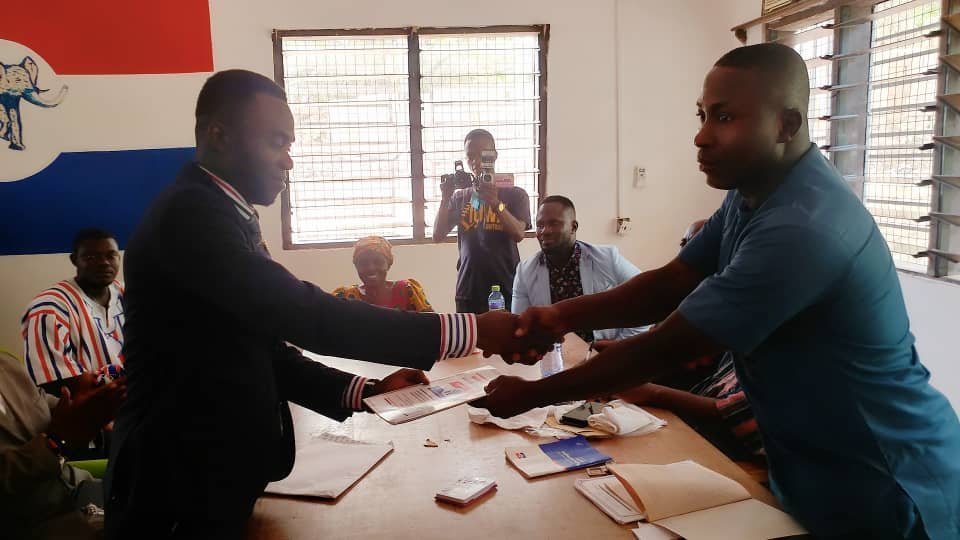 EMMANUEL OPPONG BOAKYE YIADOM PRESENTED HIS NOMINATION FORM TO THE CONSTITUENCY SECRETARY, MR SAMUEL ASARE BREW(BROTHER)